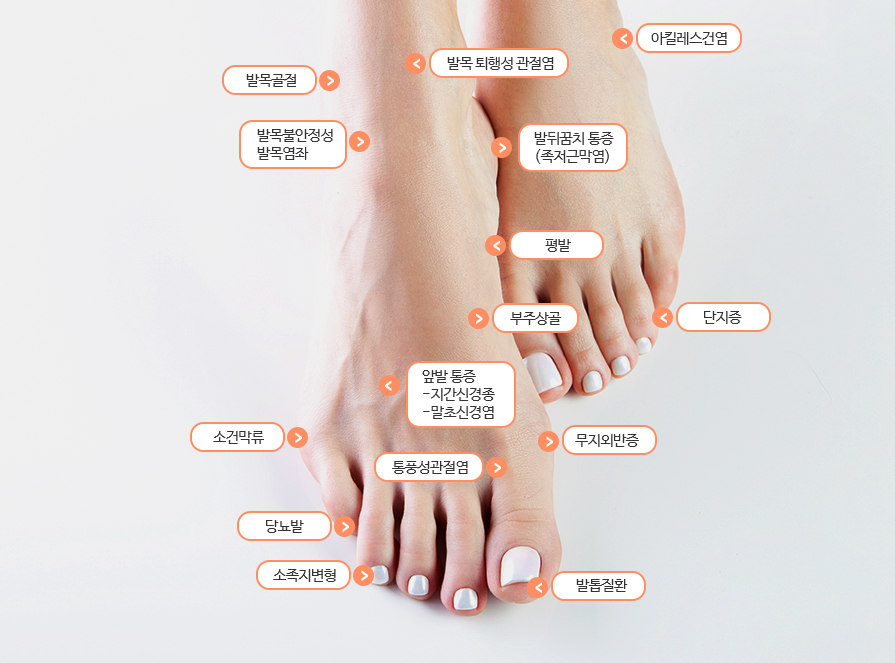 부위별로 클릭하면, 발질환에 대한 상세한 설명을 보실 수 있습니다.