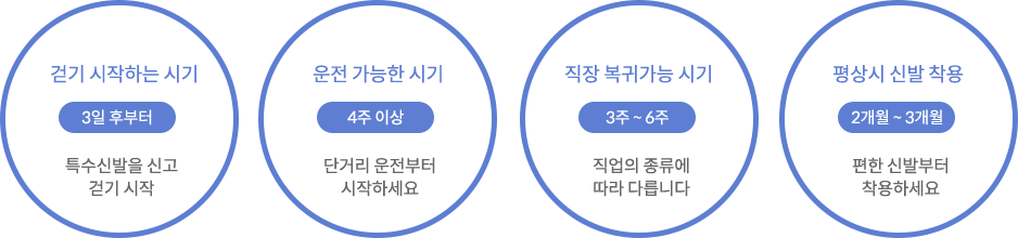 - 간혹 환자 분의 건강 상태나 발 상태를 고려하여 양발을 2-3개월 간격으로 시행하는 경우도 있습니다.