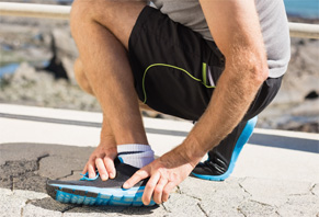 신발을 바꾼 경우, 운동하는 곳의 바닥이 딱딱한 경우 등이 아킬레스 건염을 유발하는 요인입니다. -